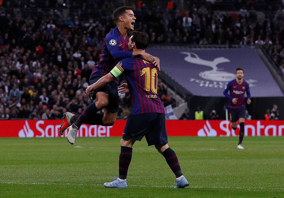 بارسا بازی را بهتر آغاز کرد و خیلی زود به گل رسید. پاس مسی به سمت چپ، پشت مدافعان تاتنهام به جوردی آلبا رسید و خروج اشتباه هوگو لوریس باعث شد تا دروازه تاتنهام خالی بماند. آلبا توپ را پشت محوطه جریمه به کوتینیو رساند و او هم با یک ضربه تماشایی، دروازه را باز کرد.