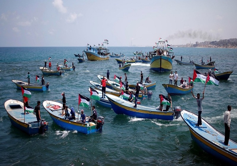 یازدهمین راهپیمایی دریایی فلسطینیها دوشنبه شب از بندر غزه به طرف سواحل زکیم در شمال نوارغزه برگزار شد.