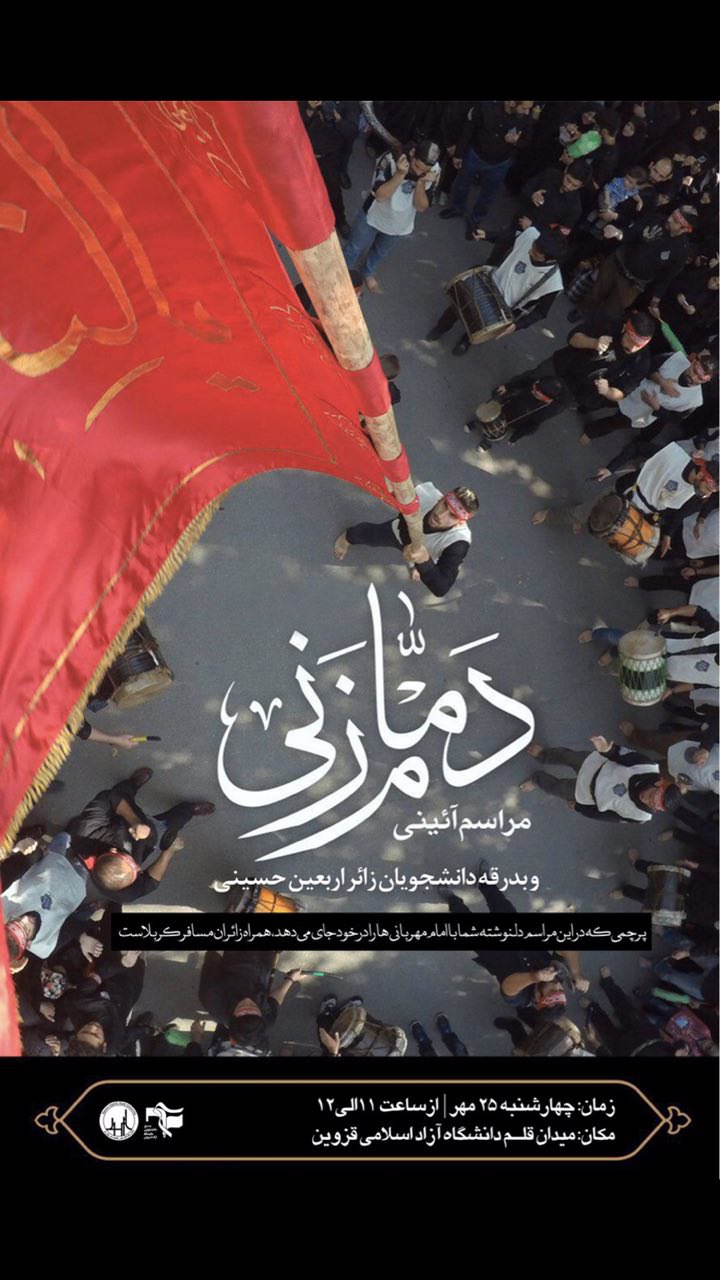 به گزارش سرویس استان های حلقه وصل، نخستین مراسم آئینی «دمّام زنی» همراه با بدرقه دانشجویان زائر اربعین حسینی قزوین برگزار می شود.