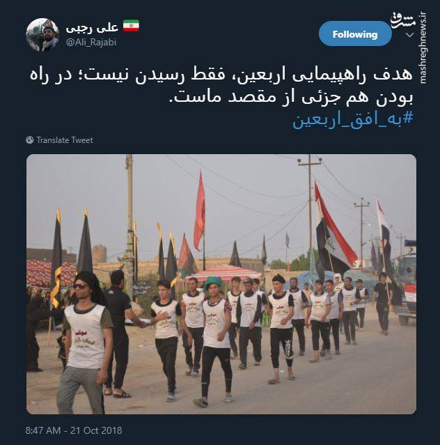 یک فعال رسانه ای در توییتر تصویری از راهپیمایی اربعین را به اشتراک گذاشت و نوشت