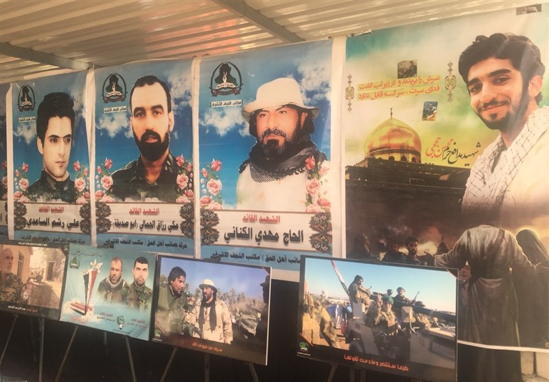 نیروهای عصائب أهل الحق که موکبی را در مسیر بزرگترین راهپیمایی جهان برپا کردند، عکس شهید حججی را بین شهدای این گروه قرار دادند.