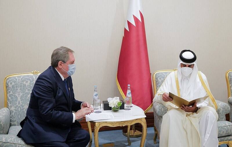 بر اساس گزارش رسانههای قطر پیام کتبی «ولادیمیر پوتین» رئیس جمهور روسیه به شیخ «تمیم بن حمد آل ثانی» در رابطه با روابط دوجانبه بین دو کشور و راههای حمایت و تقویت آن است.