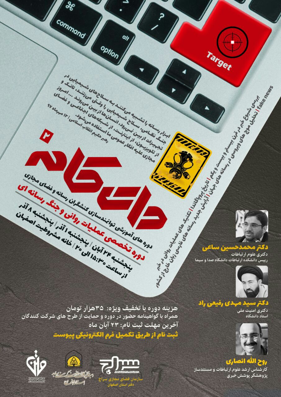 این فعال رسانه ای ادامه داد: این دوره بامحوریت عملیات روانی و جنگ رسانه ای طی سه روز 24 آبان، یکم آذر و هشتم آذرماه در خانه مشروطیت اصفهان برگزار می شود.