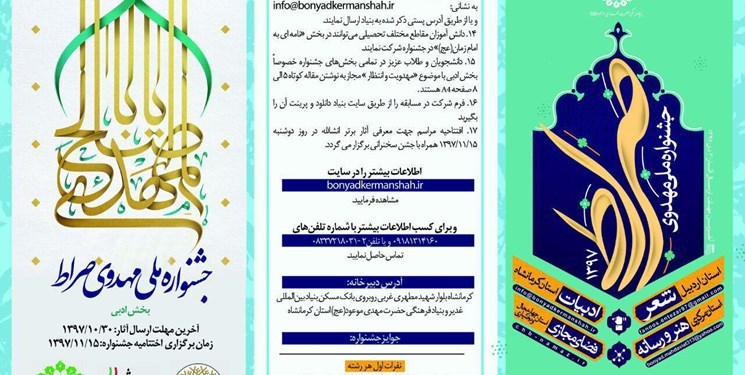 علاقه مندان میتوانند برای کسب اطلاع بیشتر به سایت دبیرخانه مرکزی مهدویت به نشانی اینترنتی mahdaviat.ir و یا به سایت بنیاد بین المللی غدیر کرمانشاه مراجعه کنند و یا با تلفنهای ۰۲۱۸۸۹۹۸۶۰۰ - ۰۹۱۸۱۳۱۴۱۶۰ تماس بگیرند.