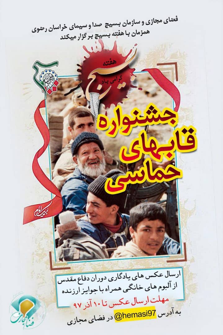 به گزارش سرویس استان های حلقه وصل، سازمان بسیج صداوسیمای خراسان رضوی به مناسبت هفته بسیج، فراخوان جمعآوری عکسهای یادگاری دفاع مقدس از آلبومهای خانگی را منتشر کرد.