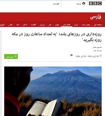 نکته جالب توجه در گزارش «روزهداری در روزهای بلند؛ به تعداد ساعات روز در مکه روزه بگیرید» این است که بیبیسی در ظاهر به بیان یک مسئله فقهی میپردازد، ولی در عمل قصد دارد به تبلیغ دو روحانی مورد تأیید انگلیس پرداخته و در کنار آن تعریضی به احکام مذهب شیعه داشته باشد.