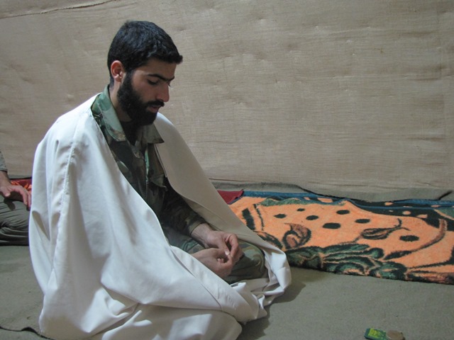 محل آموزشی اش پادگان عجبشیر بود پس از آموزشی به سلماس اعزام شد و ده ماه در یک چادر گروهی در پدافند هوایی مرز ایران و ترکیه خدمت کرد.در همان جاهم همیشه یک چفیه بر گردن و یک کلاه برسر می گذاشت و خودش را شکل رزمندگان دفاع مقدس می کرد.بچه های پادگان خیلی با او اخت شده بودند بعضی از آنها او را حاجی و برخی دیگر سید صدایش می کردند.