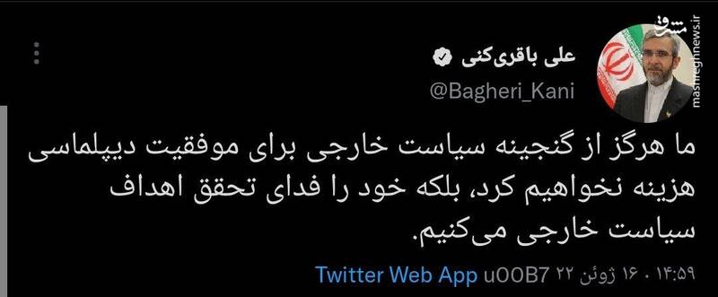 ما هرگز از گنجینه سیاست خارجی برای موفقیت دیپلماسی هزینه نخواهیم کرد، بلکه خود را فدای تحقق اهداف سیاست خارجی میکنیم.