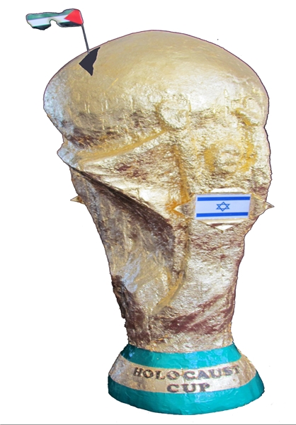 این هنرمند جوان کشورمان اضافه کرد: وقتی صحبتهای خاخام یهودی و در ادامه سخنرانی حجتالاسلام طائب پیرامون نقشههای رژیم صهیونیستی علیه مسلمانان با سرگرم کردنشان به بازی را شنیدم، بر آن شدم که کاپ جام جهانی را در قالب اثر حجمی «هولوکاست کاپ» طراحی کنم.