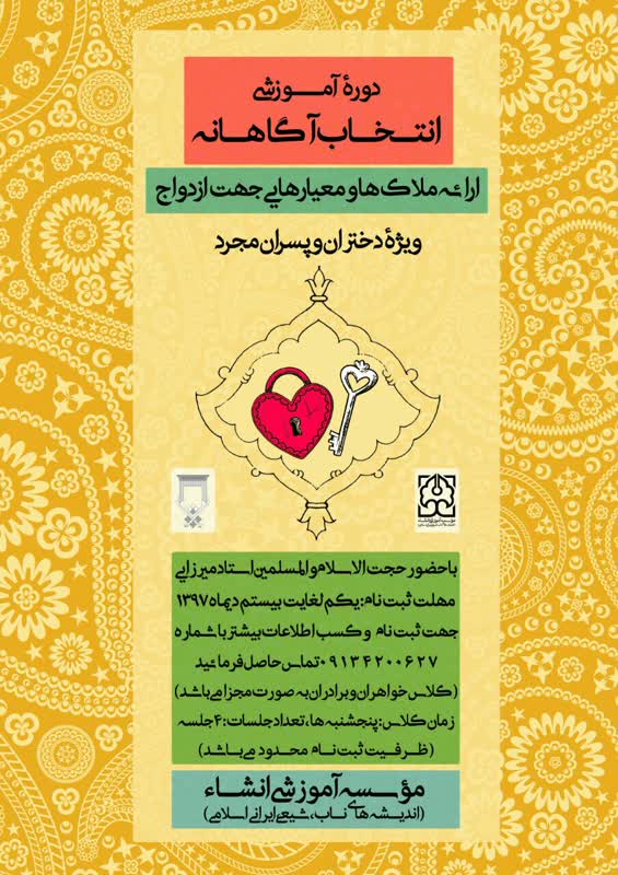مالکی پور تصریح کرد: در این دوره ملاک ها و معیارهای ازدواج با حضور حجت الاسلام استاد میرزایی مورد بررسی قرار می گیرد.