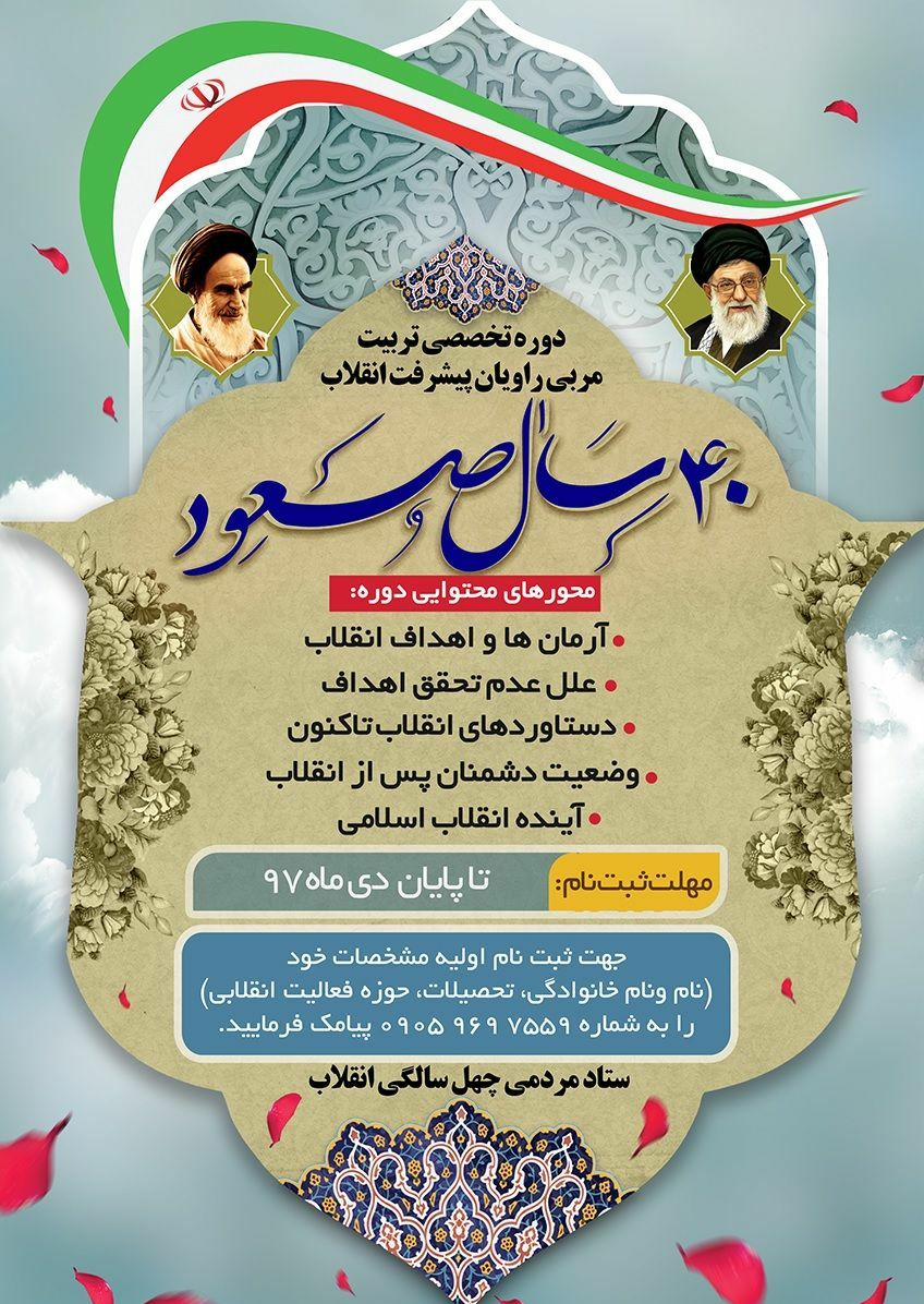 حامد شبانی مسئول کارگروه انقلاب اسلامی جبهه فرهنگی انقلاب خراسانجنوبی به حلقه وصل گفت: دوره تخصصی تربیت مربی راویان پیشرفت انقلاب در خراسانجنوبی با عنوان «چهل سال صعود» برگزار می شود.