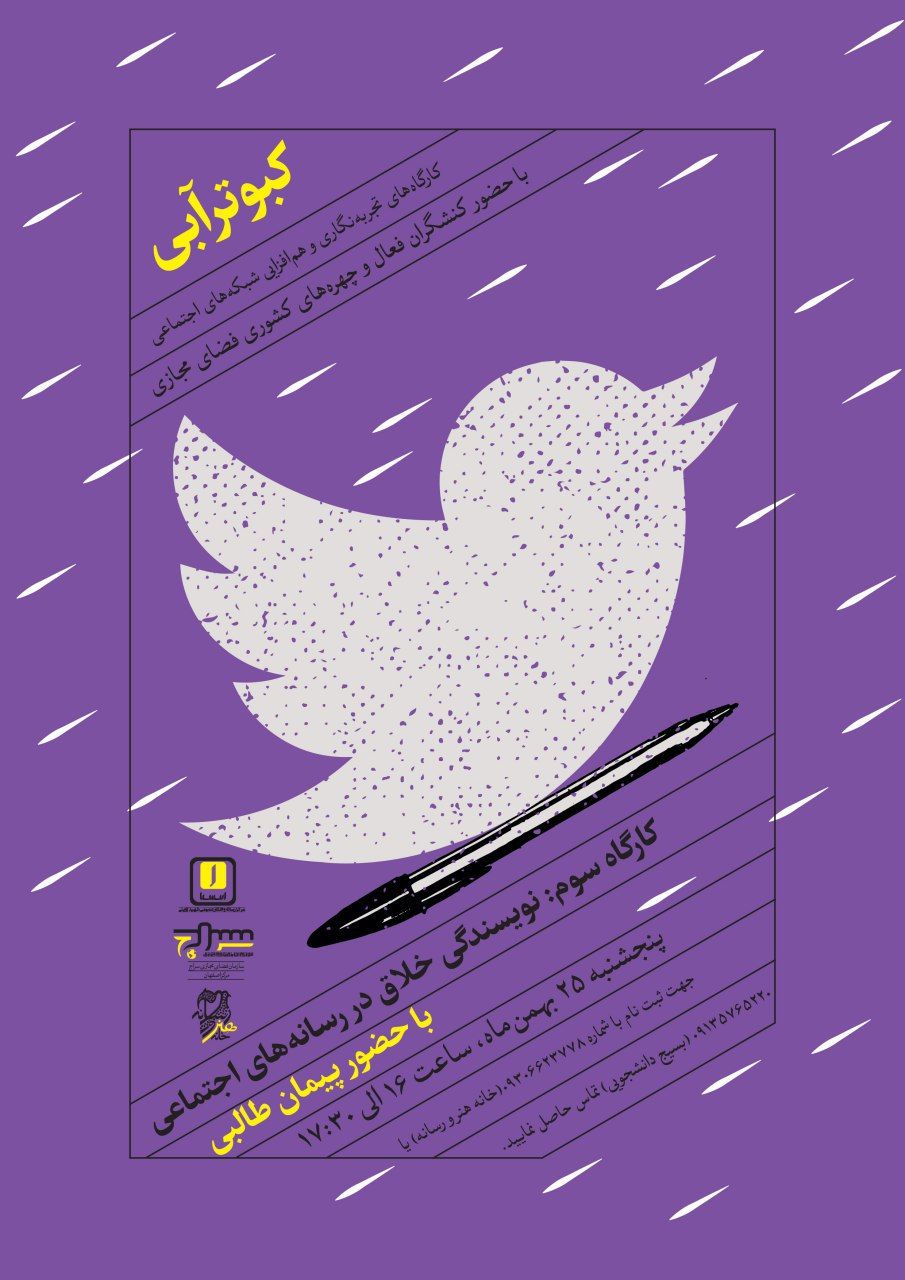شاهمرادی ادامه داد: در هر کارگاه نیز در خدمت یکی از فعالان شبکه های اجتماعی هستیم و در سومین کارگاه که عصر فردا برگزار می شود از مطالب و سخنان پیمان طالبی بهره خواهیم برد.