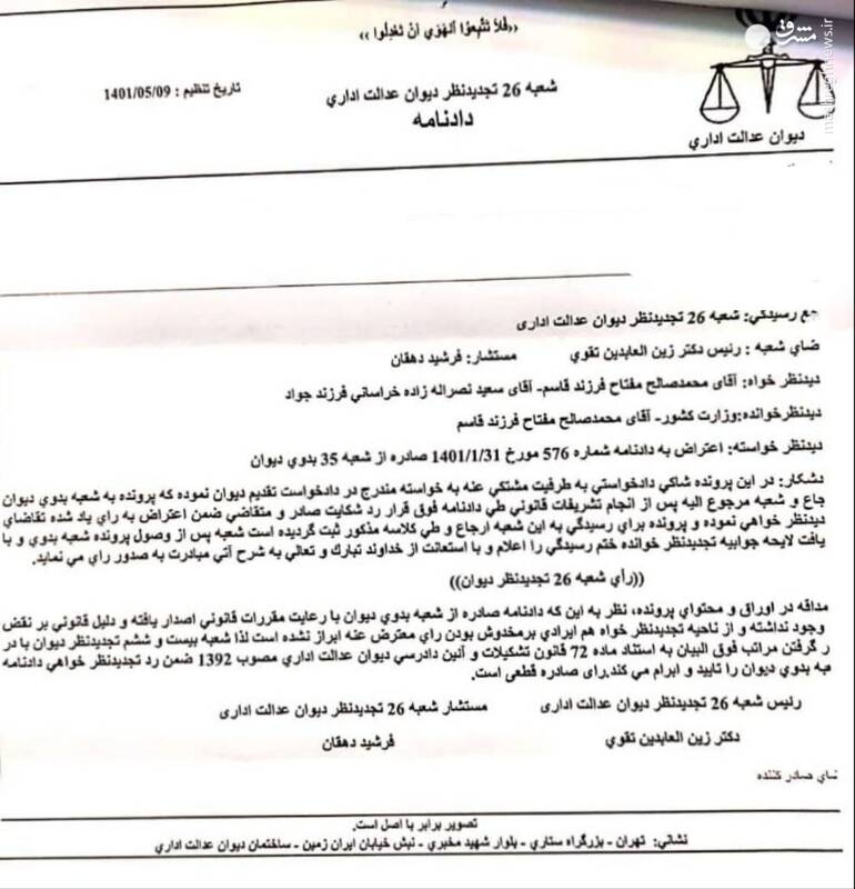 در پایان نیز کار را به شکایتهای متعدد به دیوان عدالت اداری رساندند و افکار عمومی را همچنان مورد عملیات رسانهای خود قرار دادند. در روزهای اخیر رای نهایی و قطعی دیوان عدالت اداری برای همه شکایتهای تو خالی با ظاهر قانون و عدالتخواهی صادر و همه رد شدند. حال بیشتر معلوم شد تمام نزدیک به یکسال جنجال آفرینی فقط بازی سیاسی بوده و مدعیان هیچ استدلال قانونی واقعی نداشتهاند.