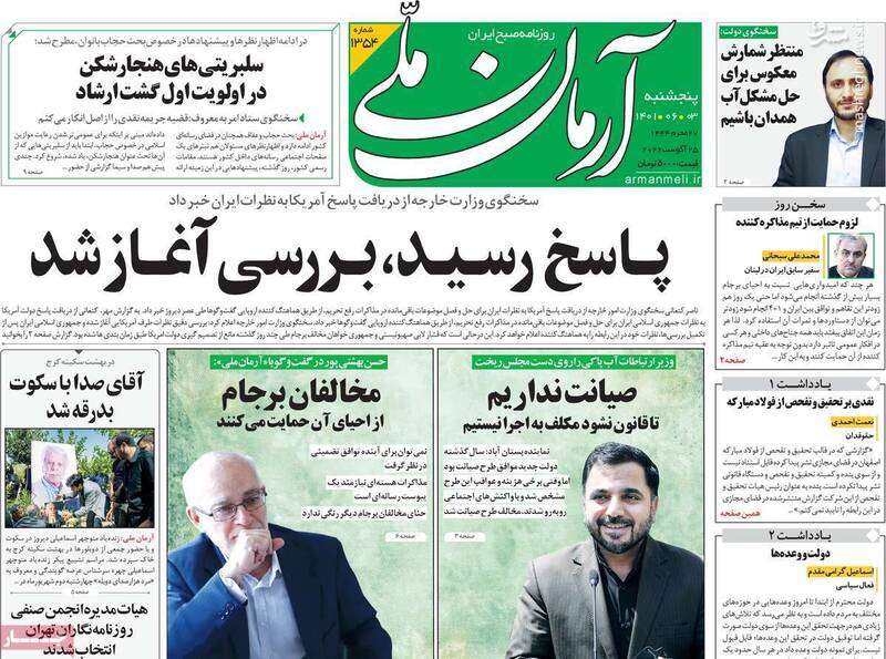 روزنامه خراسان نیز با تحلیلی از دریافت پاسخ آمریکا به نظرات ایران نوشته است: