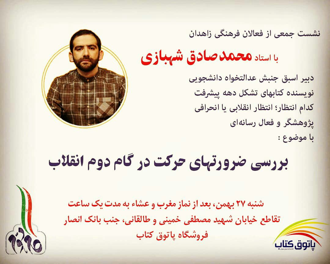 بررسی ضرورت های حرکت در گام دوم انقلاب موضوع سخنرانی شهبازی در جمع فعالان فرهنگی زاهدان است.