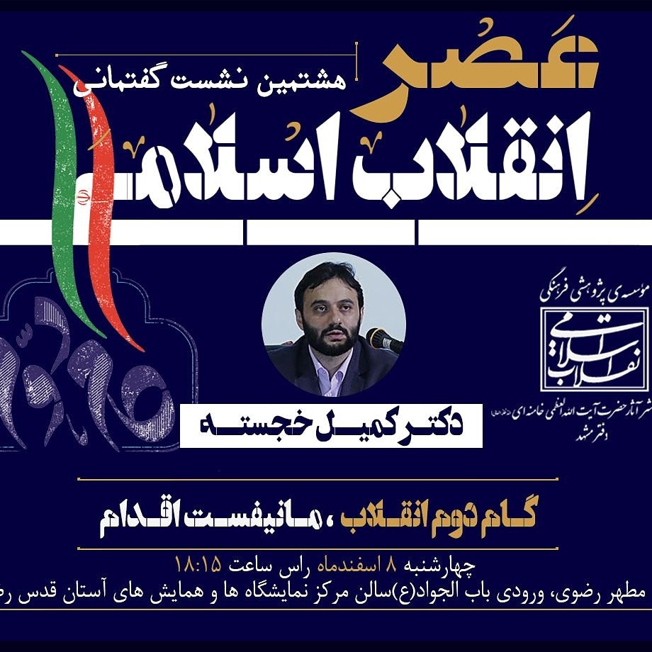 درهمین راستا هشتمين نشست گفتمان «عصر انقلاب اسلامی» عصر امروز چهارشنبه 8 اسفندماه با حضور دكتر كميل خجسته برگزار می گردد.