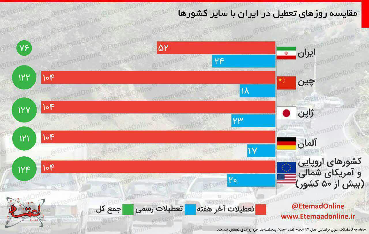 اینفوگرافیک | مقایسه روزهای تعطیل در ایران با سایر کشورها