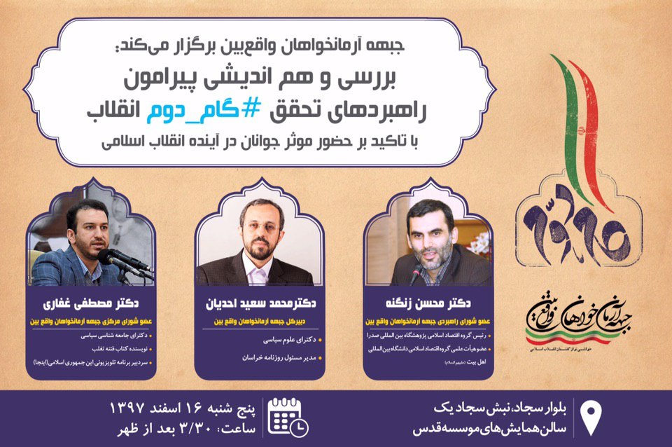 قائم مقام جبهه آرمان خواهان واقع بین ادامه داد: بر همین اساس جبهه آرمانخواهان واقع بین تصمیم دارد به جای برنامه های تکراری سازوکاری ایجاد کرده تا با استفاده از ظرفیت های عظیم موجود، هم شبکه مسایل این موضوع مهم و هم پاسخ به آنها را با کمک شما همراهان همیشگی پیدا کند. بنابراین تلاش خواهیم کرد با ایجاد کمیسیون های لازم و استفاده از همه نظرات علاقمندان مسئولیت پذیر به این هدف برسیم تا نقشه راه اقدام جوانان برای گام دوم تکمیل شود و آماده شویم برای مرحله بعد یعنی اجرایی کردن این نقشه راه.