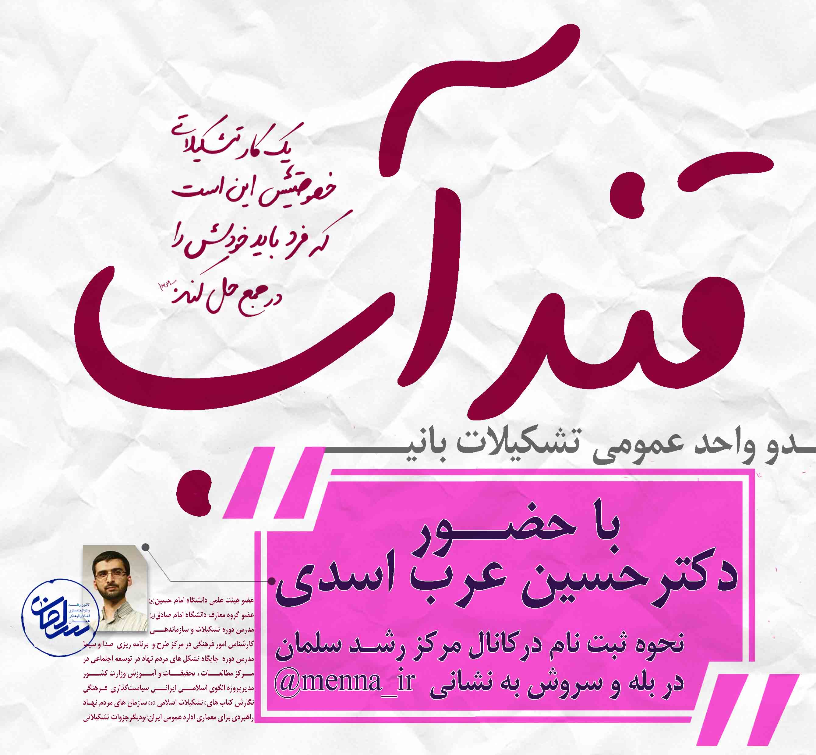 مظاهری تصریح کرد: از آنجا که یک کار تشکیلاتی خصوصیتش این هست که فرد باید خودش را در جمع حل کند، این دوره با عنوان «قندآب» نام گذاری شده است.