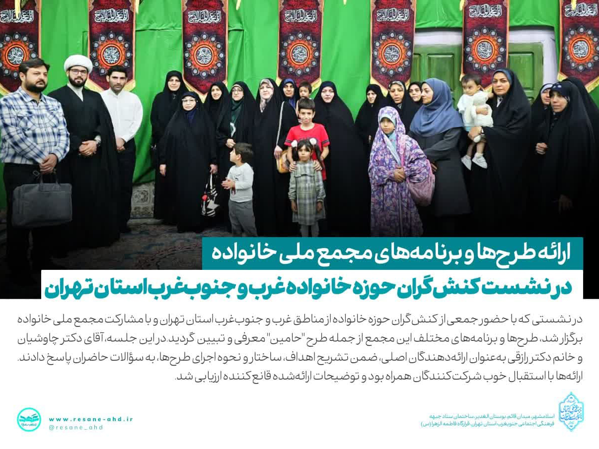 در نشستی که با حضور جمعی از کنشگران حوزه خانواده از مناطق غرب و جنوبغرب استان تهران و با مشارکت مجمع ملی خانواده برگزار شد طرحها و برنامههای مختلف این مجمع از جمله طرح حامین معرفی و تبیین گردید.