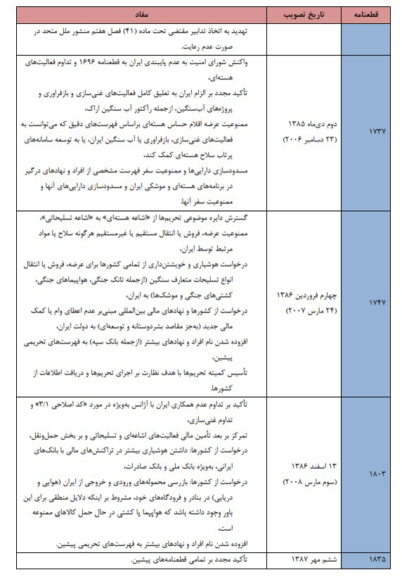 مرکز پژوهشهای مجلس به صورت خلاصه مفاد این قطعنامهها را منتشر کرده است که هیچکدام اهداف اقتصادی نداشتهاند.