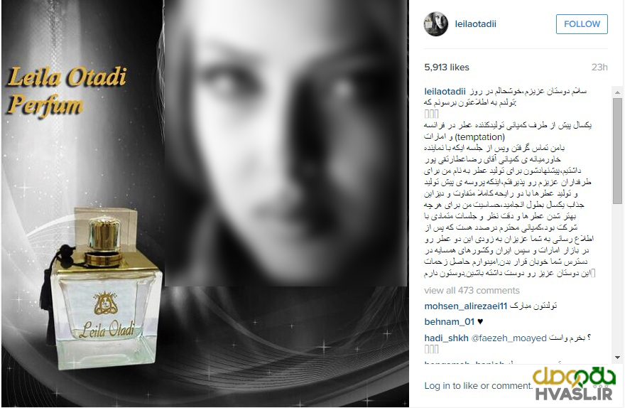 يكسال پيش از طرف كمپانى توليدكننده عطر در فرانسه و امارات (temptation) بامن تماس گرفتن و پس از جلسهای كه با نماينده خاورميانهى كمپانى آقاى رضاعطارتقى پور داشتيم، پيشنهادشون براى توليد عطر به نام من براى طرفداران عزيزم رو پذيرفتم، اينكه پروسهى پيش توليد و توليد عطرها با دو رايحه كاملا متفاوت و ديزاين جذاب يكسال بطول انجاميد،حساسيت من براى هرچه بهتر شدن عطرها و دقت نظر و جلسات متمادى با شركت بود، كمپانى محترم درصدد هست كه پس از اطلاع رسانى به شما عزيزان به زودى اين دو عطر رو در بازار امارات و سپس ايران و كشورهاى همسايه در دسترس شما خوبان قرار بدن. اميدوارم حاصل زحمات اين دوستان عزيز رو دوست داشته باشين. دوستون دارم.»
