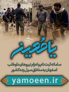 افرادی که تمایل دارند داوطلبانه در مناطق سیل زده کشور حضور داشته باشند و به هموطنان سیل زده استان های لرستان، گلستان و خوزستان امدادرسانی کنند جهت اعزام به سامانه yamoeen.ir مراجعه کنند.