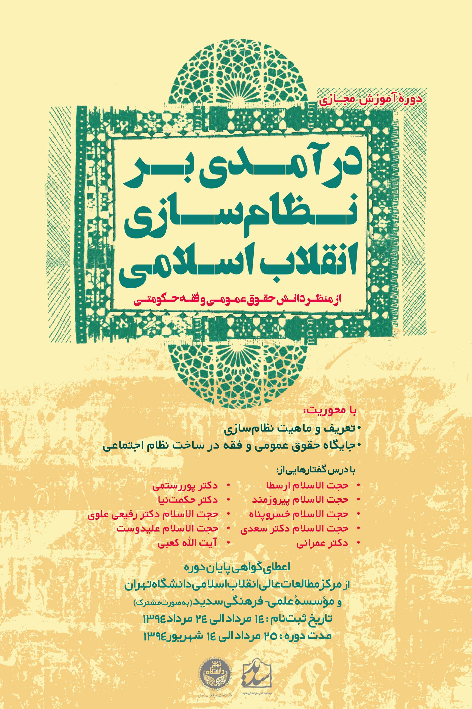 به گزارش حلقه وصل، نخستین دورۀ آموزش مجازی مؤسسۀ علمی- فرهنگی سدید، با عنوان «درآمدی بر نظامسازی انقلاب اسلامی از منظر دانش حقوق عمومی و فقه حکومتی» با محوریت تعریف و ماهیت نظامسازی و جایگاه حقوق عمومی و فقه در ساخت نظام اجتماعی، با مشارکت مرکز مطالعات عالی انقلاب اسلامی دانشگاه تهران برگزار خواهد شد.