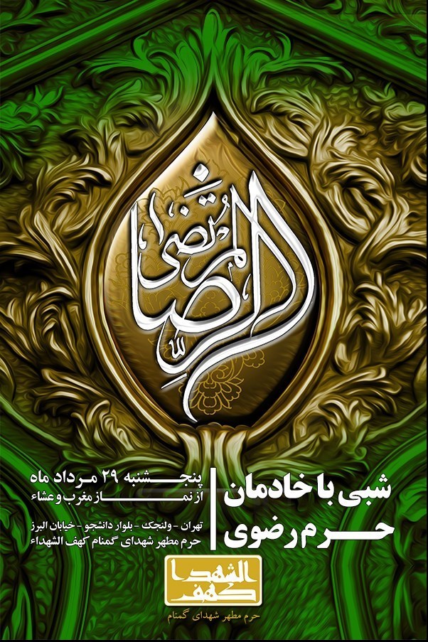 این مراسم فردا 29 مرداد با حضور خادمان آستان رضوی در حرم شهدای گمنام کهفالشهدا واقع در ولنجک، بلوار دانشجو، خیابان البرز بعد از نماز مغرب و عشا برگزار میشود.