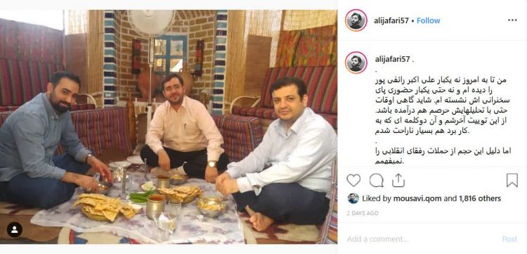 هرچند کپشن رائفی پور پیرامون این عکس قدری بی ادبانه بود اما چندسالی است رائفی پور به عنوان بازیگردانی در عرصه های مختلف، سیاسی، فرهنگی، اندیشه، اقتصاد، اجتماع، سبک زندگی، سینما و... تبدیل شده است و آنقدر در رسانه ها مطرح شده که یک کپشن او روزهای متوالی به دغدغه ی اصلی فضاهای مجازی و حقیق تبدیل شده است.
