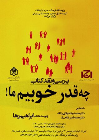 نشست نقد و بررسی کتاب به همت گروه اخلاق انجمن جامعه شناسی ایران و در روز یکشنبه 8 شهریور ساعت 10:30 در پژوهشگاه فرهنگ و هنر ارتباطات برگزار می شود.