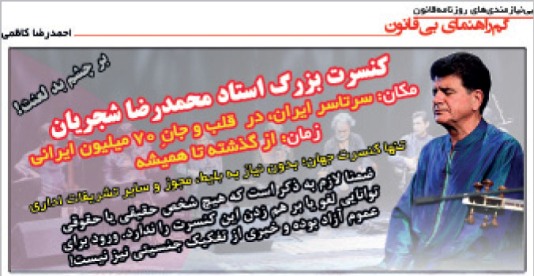 جالب آن که این روزنامه مکان این کنسرت را سراسر ایران و در قلب و جان ایرانیان ذکر کرده است!
