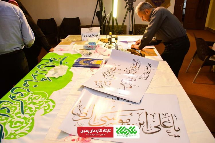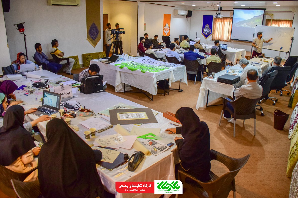 این فعال فرهنگی با بیان اینکه صالح زنگانه، عبدالرسول احمدی، عبدالهادی مظفری و علی قلی پور به عنوان استاد این کارگاه 2 روزه حضور داشتند اضافه کرد: هنرمندان و هنرآموزان در کنار هم تحت هدایت اساتید برتر در حوزه های گرافیک، خوشنویسی«نستعلیق، ثلث و نسخ»، نگارگری و تذهیب اقدام به طراحی کتیبه و پرچم، مزین به عناوین و القاب نوشتاری مرتبط با حضرت علی بن موسی الرضا علیه السلام می نمایند.