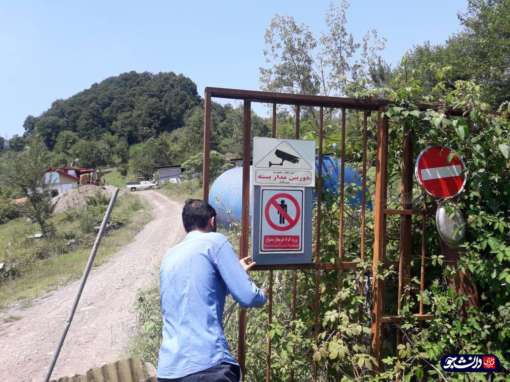 دانشجویان با همراهی دادستان و یکی از افراد مطلع روستا، سری به دیگر محل های این روستا زدند. کوچه دیگری هم با تابلو، از مردم جدا شده بود. این کوچه به دلیل اینکه یکی از افراد غیربومی که گیلانی هم نیست، مقدار بالایی از این زمین ها را خریداری کرده و البته نه همه زمینها، با تابلو از روستا جدا شده؛ این در حالی است که این کوچه محل رفت و آمد مردم روستاست و برخی مردم روستا در این منطقه زمین دارند.