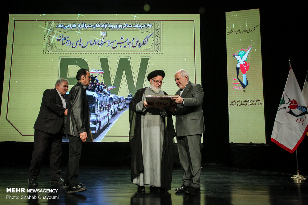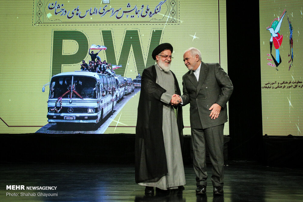 حلقه وصل: کنگره ملی الماسهای درخشان به منظور تجلیل از آزادگان، همزمان با سالروز ورود آزادگان به میهن اسلامی، شنبه ۲۶ مرداد با حضور حجت الاسلام شهیدی رئیس بنیاد شهید و امور ایثارگران، محمدجواد ظریف وزیر امور خارجه کشورمان و جمعی از آزادگان جنگ تحمیلی در تالار اندیشه حوزه هنری برگزارشد.