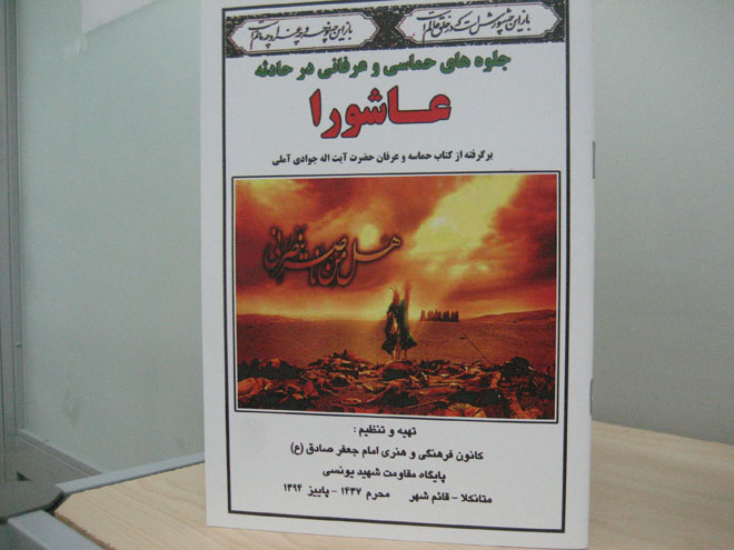 خسرو نجفي مسئول كانون فرهنگي و هنري امام جعفرصادق(عليه السلام) روستاي متانكلا شهرستان قائمشهر به حلقه وصل گفت: كتاب جلوه هاي حماسي و عرفاني در حادثه عاشورا برگرفته از كتاب حماسه و عرفان حضرت آيت الله جوادي آملي به همت كتابخانه اين كانون و پايگاه مقاومت شهيد يونسي به مناسبت محرم 1437 چاپ و توزيع شد.